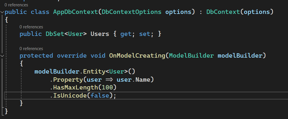 The bottom line is that we can easily optimise database costs just by using the appropriate data types. You can also easily configure your column data types in EF Core and it would look something like this: