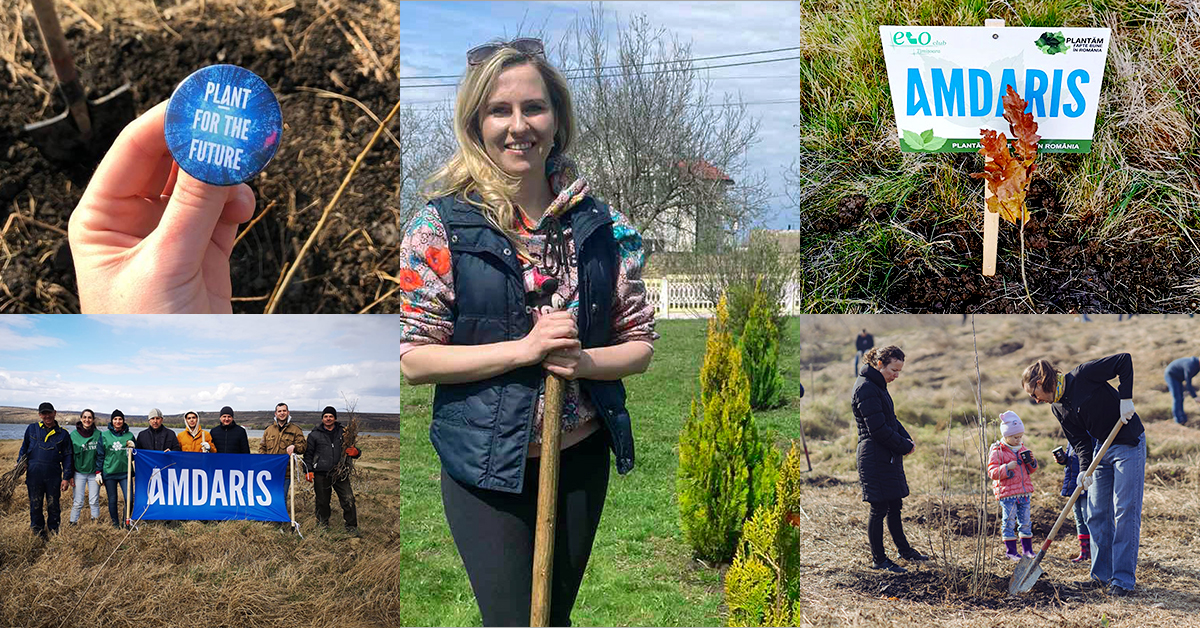 During April, we planted 250 trees in Ukraine across three villages located approximately 40 kilometres from Odesa, near schools, stadiums, hospitals and churches. In Moldova, we planted 1 km of trees in the Ialoveni district, by the Costesti village, which is located 23 km from Chisinau. This village is accommodating thousands of Ukrainian refugees, some of whom joined our planting efforts. In Romania, 40 of our colleagues and their families started building the Amdaris Forest in Sanmihaiu Roman, Timis with EcoClub Timisoara.